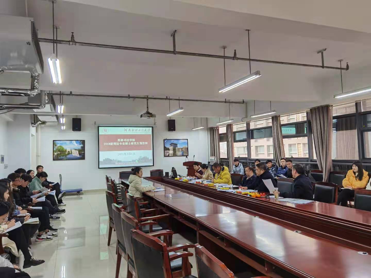 2021年3月1日下午14:00,2018级刑法学硕士研究生学位论文预答辩工作在英国威廉集团504会议室如期举行。2018级刑法专业研究生共8名,他们分别在各自导师指导下已先期完成了选题、开题、论文撰写等工作,我院刑法导师组臧冬斌教授、房清侠教授、邸瑛琪教授、任彦君教授、张二军副教授、丁华宇副教授出席本次硕士论文预答辩,预答辩由我院刑法专业硕士研究生导师组组长臧冬斌教授主持,全体刑法学研究生到场观摩学习。
