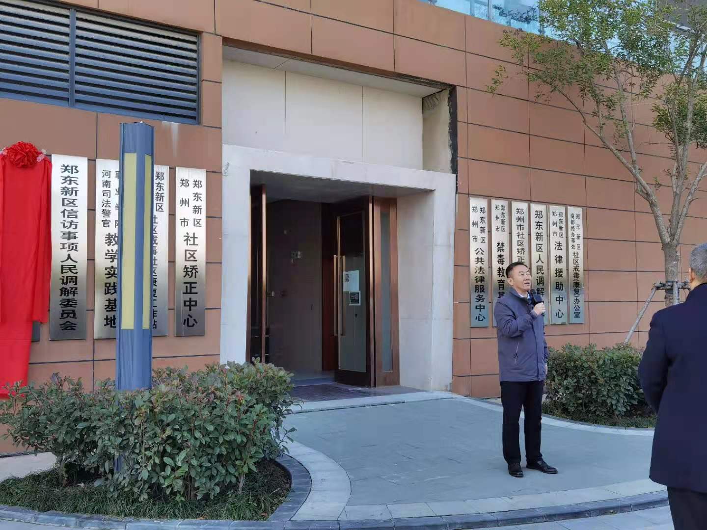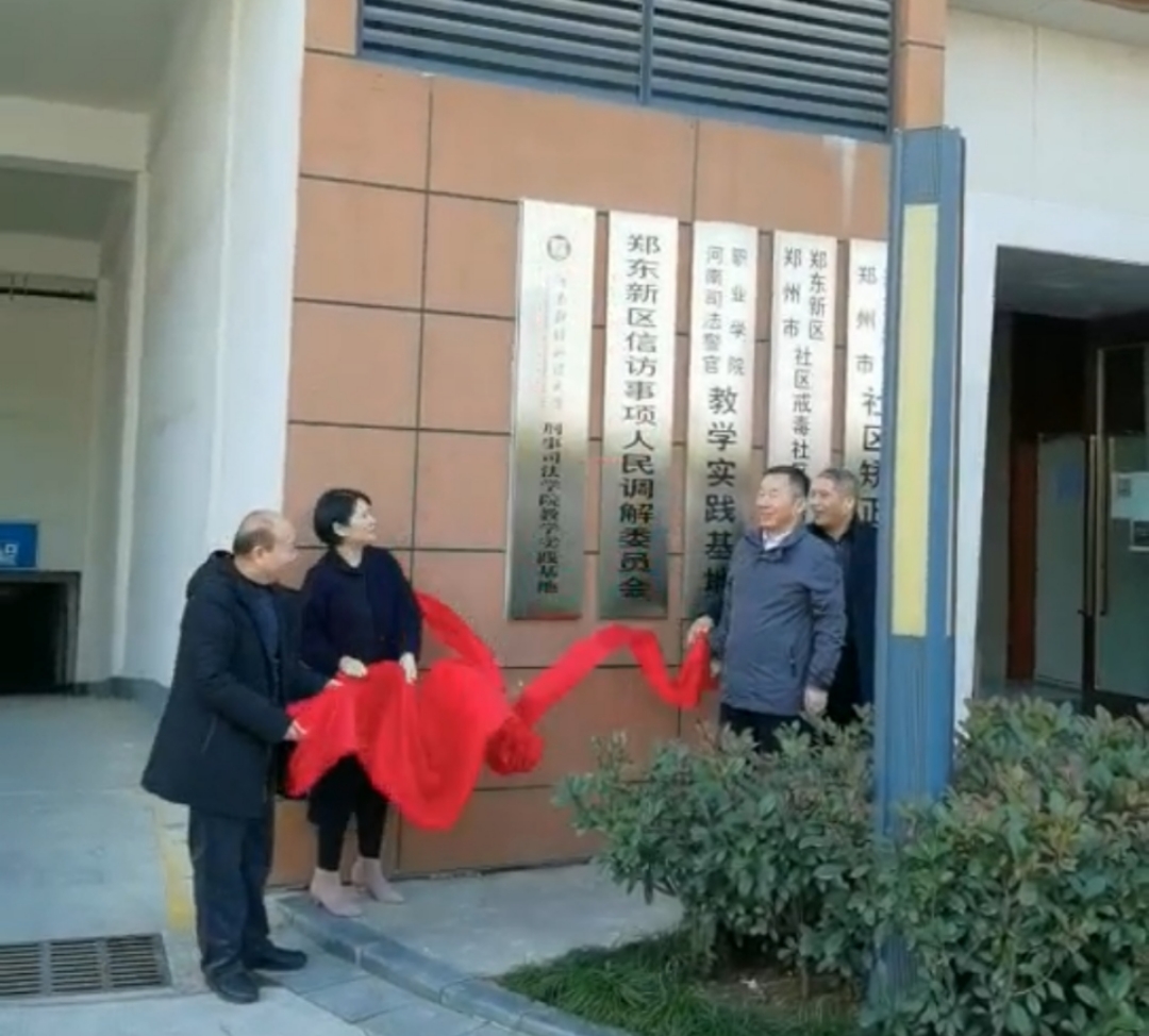 之后翟艳胜书记与张二军副教授与郑东新区社区矫正机构负责人共同进行揭牌仪式。