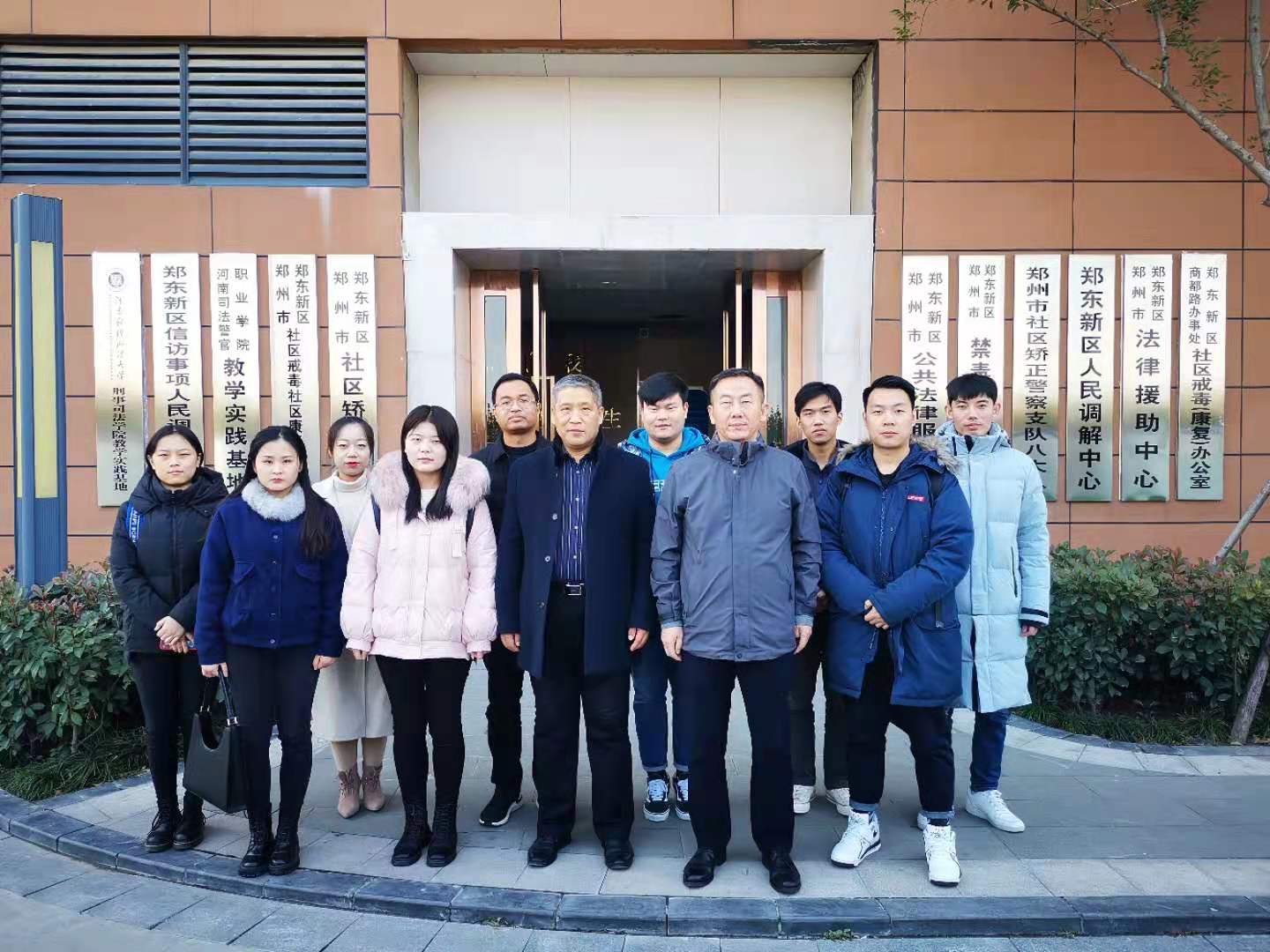 2020年12月4日上午9时许,我院翟艳胜书记、张二军副教授、朱贺博士、方家亮博士、杨岩博士以及2019级全体刑法学研究生参加了与郑东新区社区矫正机构签署的“教学实践基地”揭牌仪式。