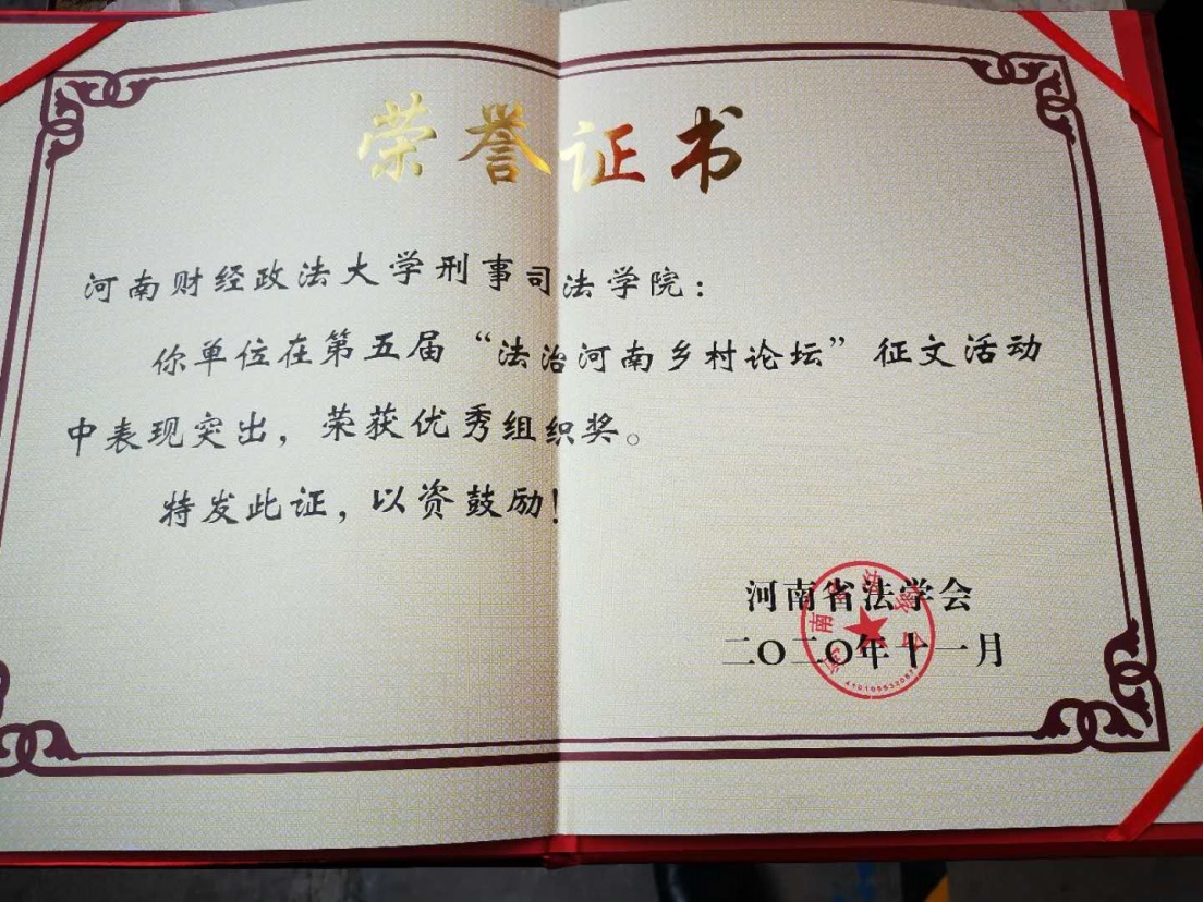我院获得第五届法治河南乡村论坛优秀组织单位