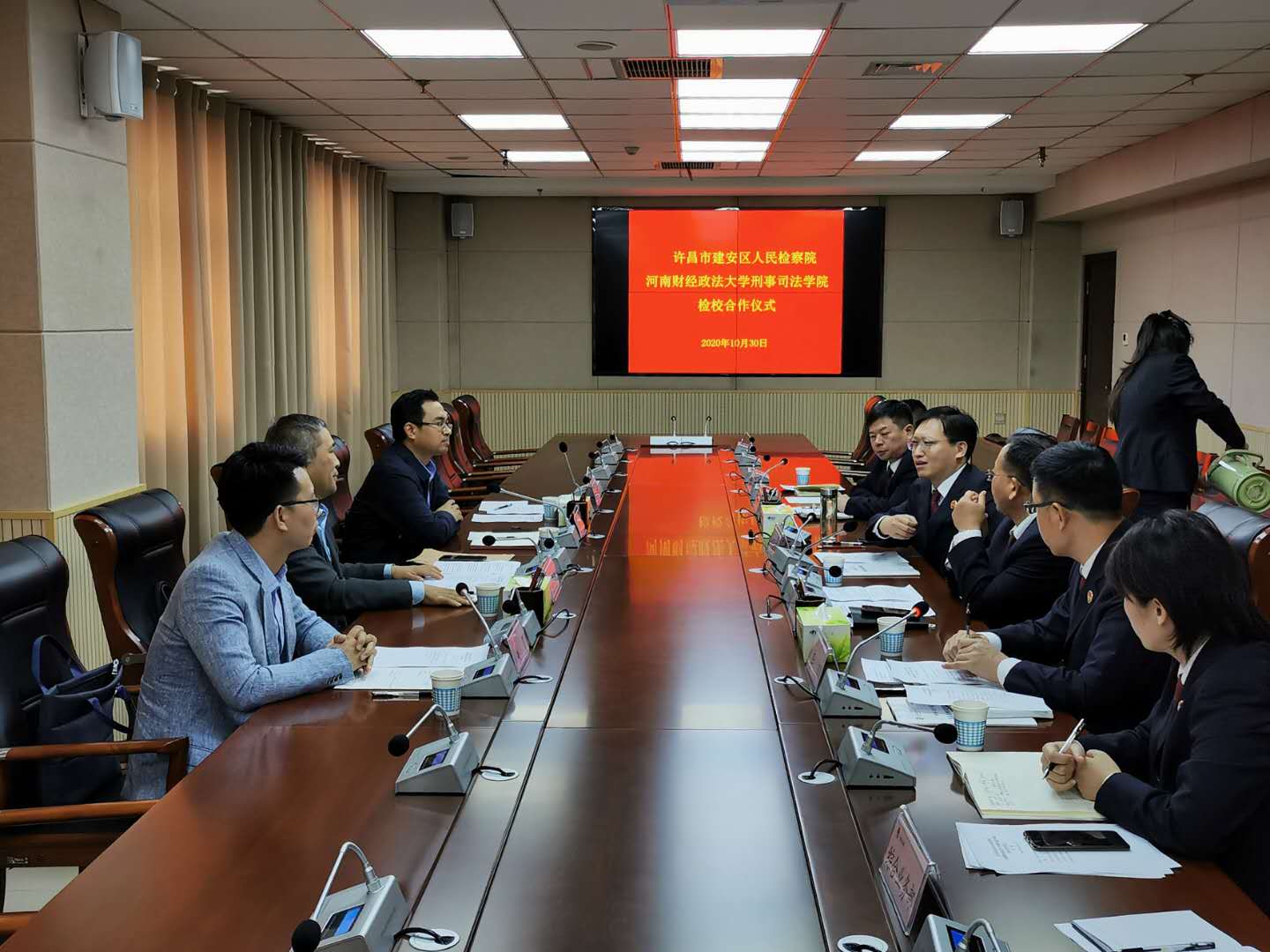 调研中,建安区人民检察院党组书记、检察长杨鑫炜介绍了建安区检察院在信息化建设、智慧检务和未成年检察工作等方面的经验做法。在随后的座谈中,双方先后围绕高校与实务部门联合培养基层法律人才机制、合作开展类案检索和典型案例研究等话题展开了深入探讨交流,并就合作建立“校外实习实践基地”和“司法案例研究基地”达成了共识。