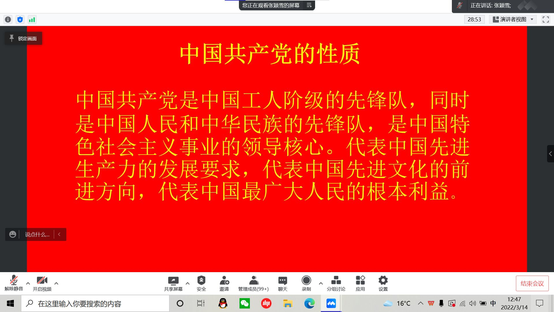 3月14日中午,我院第二十三期积极分子开班仪式于线上成功举办,本次会议由我院学生党务中心张颖雪主持,本期全体积极分子参加会议。