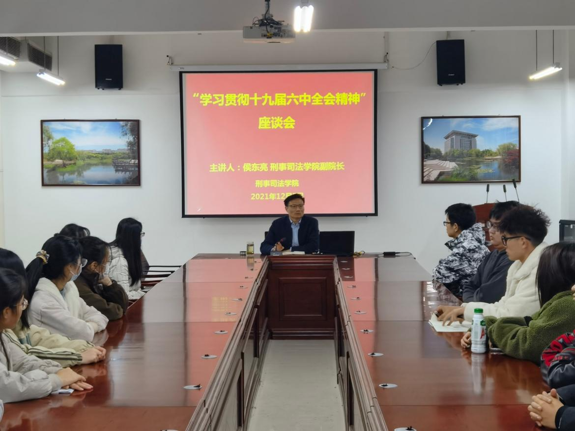 为深入贯彻学习党的十九届六中全会精神,提升学生的学习能动性和考研积极性,12月5日晚,我院于教学科研楼504会议室召开学习党的十九届六中全会精神座谈会,会议由我院副院长侯东亮主持,20级全体学生干部参会。