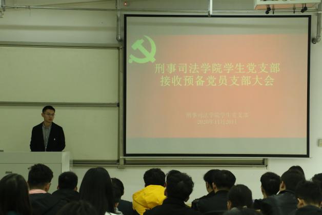 11月20日中午,我院于教学科研楼107教室召开学生党支部接收预备党员支部大会。我院团委副书记、学生党支部组织委员王梦秋,2020级辅导员、支部委员介晓宇出席会议,参评的发展对象及全体在校党员参加了本次会议。