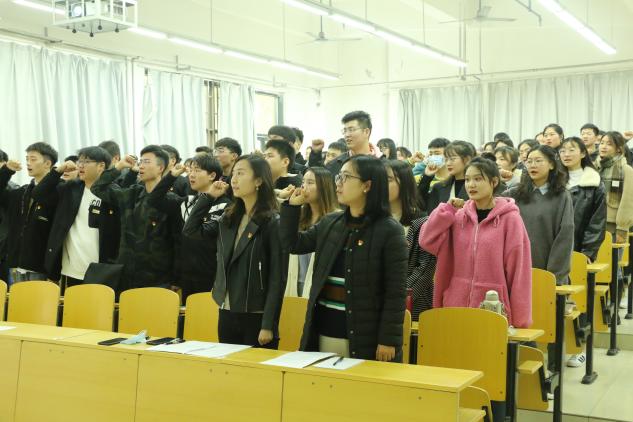 会议伊始,主持人宣读发展党员的一般程序,随后26名发展对象依次上台宣读入党志愿。每位发展对象发言完毕后,有关推荐人对其优缺点展开评价。经过认真研究以及无记名投票表决,26名发展对象均全票通过,被党组织吸收为新的预备党员。对于新预备党员的到来,介晓宇老师表示祝贺并发表讲话,她强调,作为预备党员,要严格要求自己,不忘初心,砥砺前行。随后,全体党员及26名新加入的预备党员在党务中心负责人王友鑫的带领下庄严宣誓。大会最后,王梦秋老师进行总结发言,对在座学生提出三点希望:第一,希望成为预备党员的同学加强政治理论学习,以正式党员的标准严格要求自己,从思想、行动上不断完善自己,积极融入新时期党员创先争优的活动中,争取早日成为一名正式的共产党员。第二,希望老党员能够借助吸纳新党员的契机,牢记入党初心,努力学习,在引导新党员过程中,充分发挥共产党员的先锋模范作用。第三,希望全体党员团结起来,讲党性、重品行、作表率,发扬党的优良传统,扎实工作,为班级、为学校、为社会做出更大贡献。