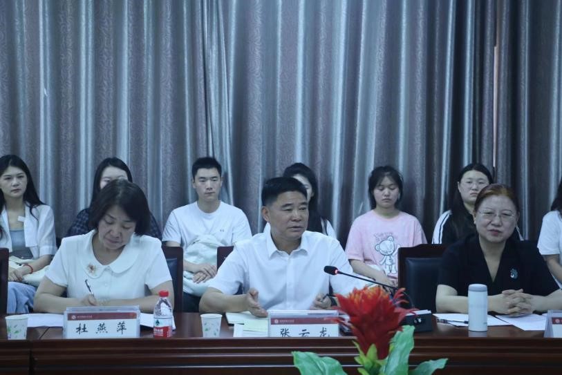 王健首先对张云龙一行的到来表示热烈欢迎,并介绍了参加会议的嘉宾和师生代表。接着,杨田介绍了我校法学学科的基本情况,以及我校正在进行的学部制、书院制改革的进展情况,并强调我校始终牢记习近平总书记关于“高校立身之本在于立德树人”的重要讲话精神,努力构建“以学习者为中心”的教育生态,在人才培养、学科建设、创建一流大学、申请博士点等方面均取得了重大突破。张云龙对我校在法学教育和法学理论研究领域取得的成绩予以充分肯定,并介绍了河南省高级人民法院在改进审判工作、关心下一代等方面的主要做法,代表河南高院表达了与我校在法治人才培养、法学理论研究等方面开展“院校合作”、实现互赢发展的意愿。