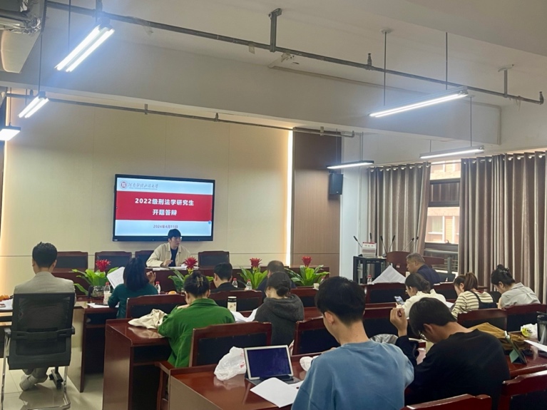 2024年4月10日下午,我院2025届刑法学硕士研究生学位论文开题答辩会在学院504会议室如期举行。我院刑法学导师组臧冬斌教授、任彦君教授、张二军副教授、陈璐副教授、方加亮老师、刘剑老师、杨岩老师及朱贺老师共同组成考核组并出席本次答辩会。会议由刑法学导师组组长臧冬斌教授主持,2023级刑法学硕士研究生到场观摩学习。