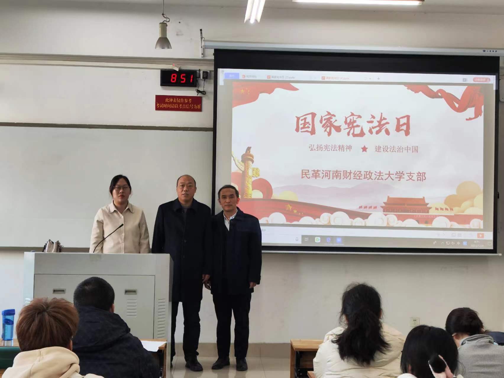 12月4日,是我国的第十个国家宪法日,为弘扬宪法精神,增强宪法意识,促进依宪治国和全面依法治国,我院纪检监察专业本科班邀请民革威廉williamhill支部走进大学课堂,给纪检监察专业本科生举办了宪法相关知识讲座。讲座采用座谈形式,由任课教师庞慧洁博士、支部主委刘用军教授、支部党员张英豪博士与学生展开共同交流。庞慧洁博士介绍了国家宪法日的由来和意义,刘用军教授讲解了宪法日对于强化由上至下树立宪法意识的重要性,张英豪博士通过案例阐释了宪法中的平等性要求。多名学生针对以上发言阐述了自己的看法,并上台与大家互动。本次宪法日活动是民革支部服务社会职能的展现,通过这样的活动,进一步增强了同学们对宪法的理解,对于弘扬宪法精神,加强宪法理论研究,使青年学生带头成为宪法的忠实崇尚者、自觉遵守者、坚定捍卫者,具有重要意义。