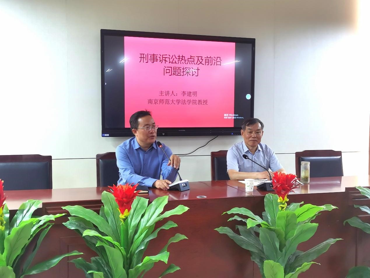2023年5月16日下午,南京师范大学法学院教授、博士生导师李建明莅临我院开展以“刑事诉讼热点及前沿问题探讨”为主题的学术讲座。讲座于教科楼504会议室召开,我院副院长陈在上主持会议。