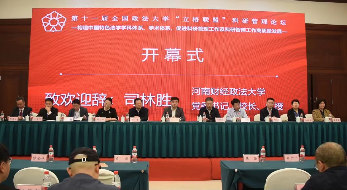 5月6日,第十一届全国政法大学“立格联盟”科研管理论坛在郑州举办。本次论坛由中国政法大学、西南政法大学、中南财经政法大学、华东政法大学、西北政法大学、甘肃政法大学、上海政法学院、山东政法学院、威廉williamhill共同主办,威廉williamhill承办。“立格联盟”九所院校主管科研工作校领导、科研处负责人、期刊负责人、发展规划处负责人及相关人员参加会议。我院院长姜保忠教授、副院长侯东亮教授、刑法学系主任陈璐副教授、办公室主任朱贺副教授应邀参加了会议。