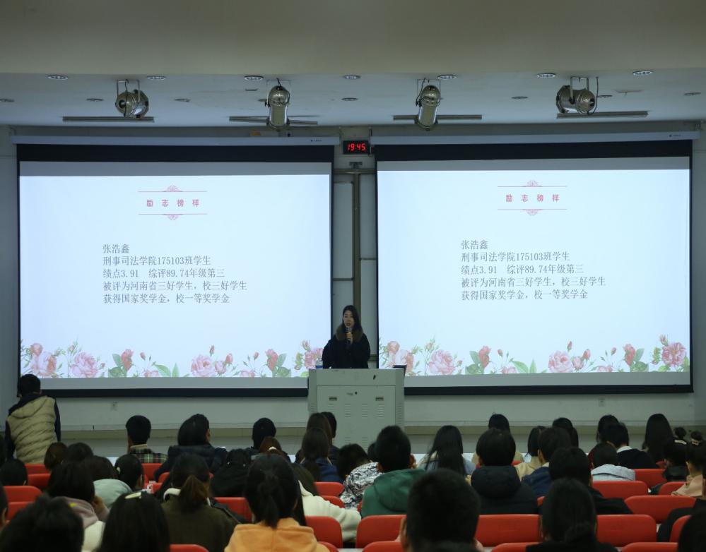 活动伊始,资助部负责人成奕宁就“何为成长成才”、“成长成才的意义”以及“怎样成长成才”三个问题进行阐述,加深了在座学生对成长成才的理解认识。随后,主持人张润宇介绍了我院本年度“成长成才励志模范”—— 175103班张浩鑫、195101班李申奥和195104班张茜三位学生。三位励志模范结合自身成长经历,从学习与生活等方面向在座学生做了演讲。其中,张浩鑫讲述了自己保研成功的事迹并分享了自己的学习经验,她鼓励同学们多读法学经典名著,扩大自己的知识面,不断提高自己的专业能力;李申奥则回忆了自己复读的心路历程,希望大家珍惜自己努力拼搏获得的宝贵学习机会;张茜则围绕大学期间如何有效提升自身能力分享了自己的看法,并结合自身实际情况说明了大学中多方面发展的重要性。