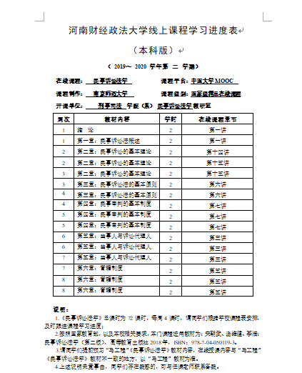 民诉教研室制订多种方案,尝试各种在线教学方法,总结各种方式的不足和优点,仅录制课程就尝试了5种以上软件。为了防止网络等因素造成教学风险,老师们集体攻克难题,在爱课程、中国大学慕课等网站分头搜索国家级精品课程,进行精心比较甄选,选用与马工程教材以及本校民诉法课程最贴近的南京师范大学慕课资源作为备选方案,为了方便学生学习,将慕课资源全部下载,设置在所有任课教师的超星课程资料里,供学生作为学习参考资源。保证了在线教学的稳健推进,确保零风险,争取在线课程的零失误!