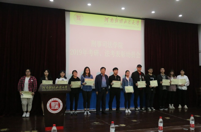 为深入贯彻落实党的十九大精神和教育方针政策,全面加强校风学风建设,切实提升我院毕业生就业成功率和考研录取率。4月23日晚,我院于教一220报告厅举办2019年度考研、司考表彰动员会。会议由我院党委副书记刘杰主持,院长李卫平、副院长姜保忠以及部分师生代表出席了此次会议。