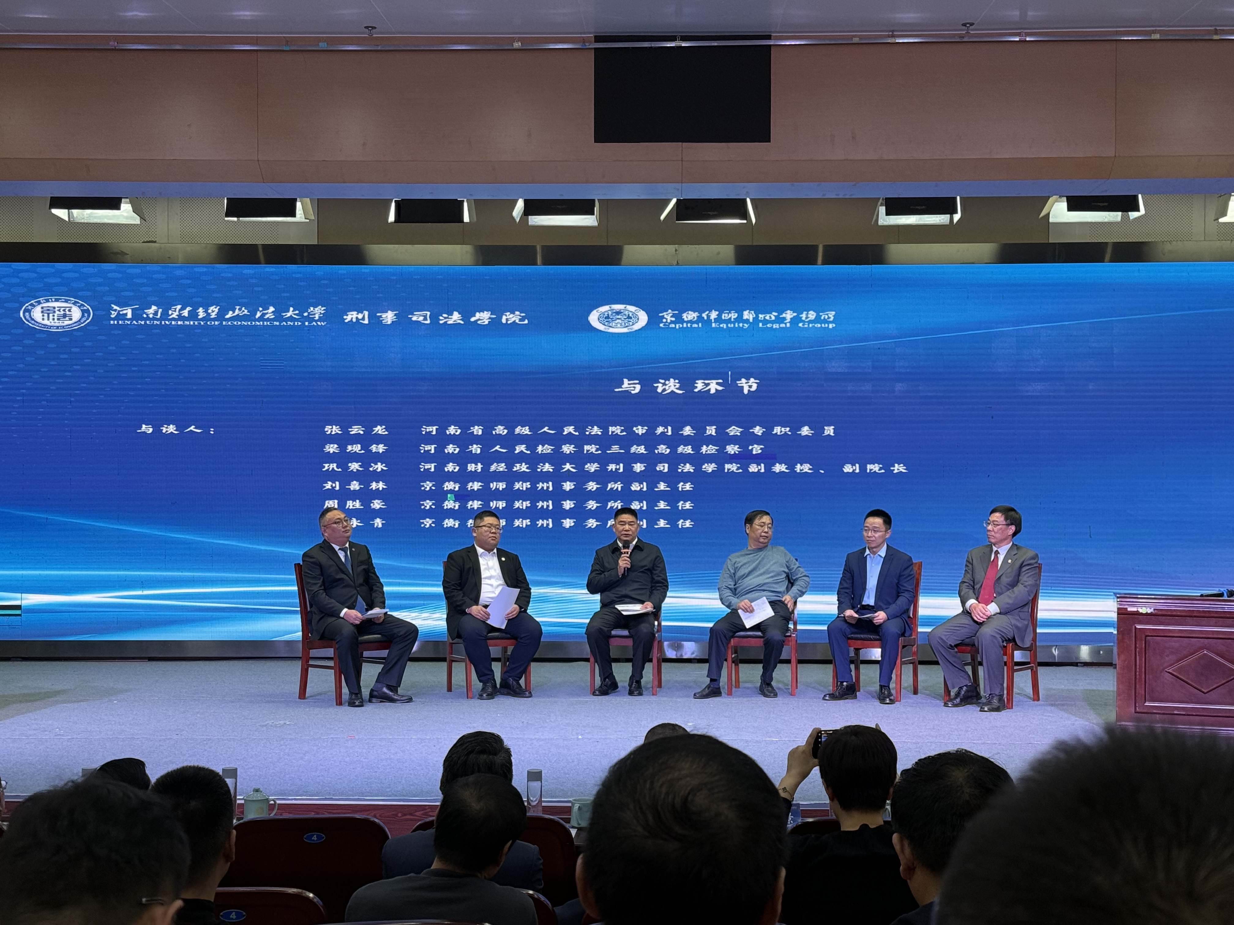 论坛最后,河南省高级人民法院审判委员会专职委员张云龙,河南省人民检察院三级高级检察官梁现锋,英国威廉集团副院长巩寒冰,京衡郑州律师事务所副主任刘喜林、周胜豪、李永青围绕当前刑事证据规则应用存在的突出问题及其应对,展示与交流分享。