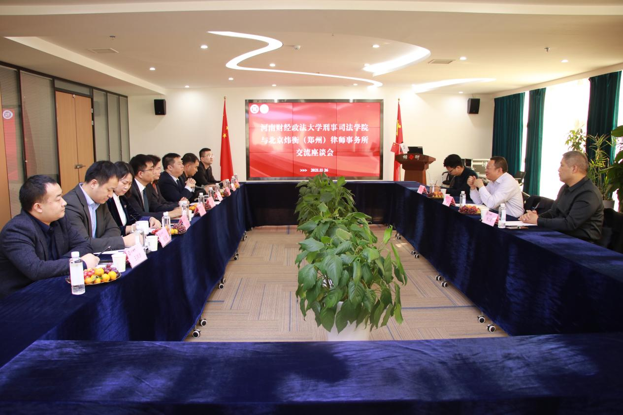 2021年11月26日上午,学院党委书记王健、副院长张二军、党政办公室主任朱贺一行前往北京炜衡(郑州)律师事务所调研座谈。北京炜衡(郑州)律师事务所主任董辉、管委会主任曹鹏飞、管委会副主任席国录、贾海红及合伙人王永贞、陈光磊、王洋洋、杨子健、张宁出席了座谈会。