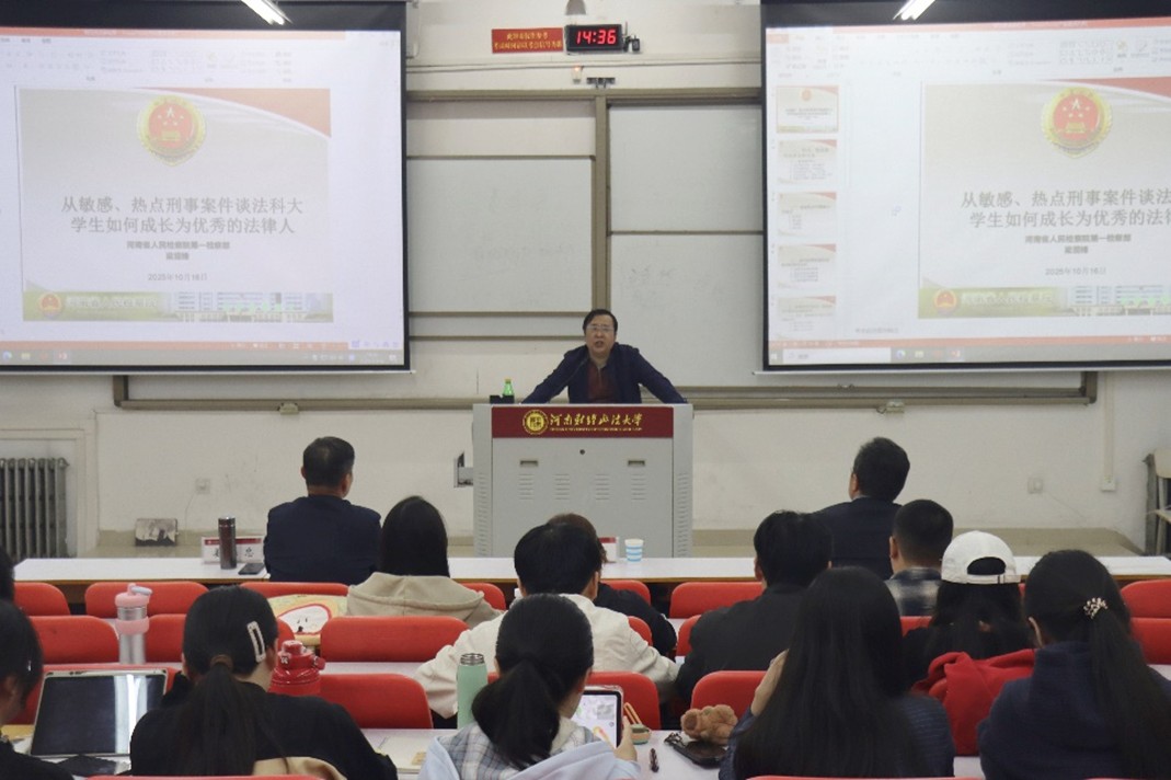 10月16日下午,河南省人民检察院“检察实务专家进校园”系列讲座(第十二讲)在我校郑东校区第二教学楼顺利举行。本次“双师同堂”的主讲人河南省人民检察院普通犯罪检察部三级高级检察官、全省检察业务专家、全省检察机关“十佳公诉人”梁现锋就《从敏感热点刑事案件谈法科大学生如何成长为优秀的法律人》进行专题讲座。威廉williamhill纪检监察学院院长姜保忠教授围绕讲座主题进行点评和补充。讲座由英国威廉集团院长、检察学研究院执行院长陈在上教授主持,校院师生百余人参加了本次学术活动。