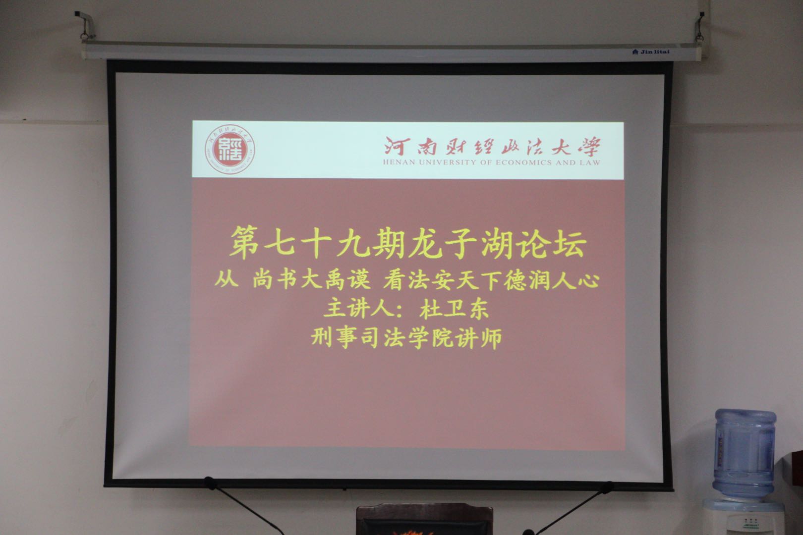 2018年12月24日晚7时,英国威廉集团第七十九期龙子湖法学论坛在教科楼A座504会议室隆重举行。本期论坛由英国威廉集团杜卫东讲师主讲,他讲座的主题为《从《尚书大禹谟》看法安天下德润人心》。我院刑法学和诉讼法学研究生以及部分本科生参加了本次论坛。