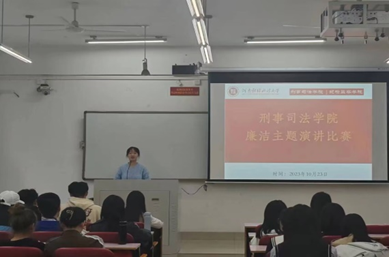 为提高我院学生“知廉、敬廉、尚廉、践廉”的意识,进一步推进校园廉洁文化建设,营造风清气正的校园氛围,我院于10月23日下午,在第一教学楼202教室举办“廉洁文化”主题演讲比赛,我院本科生积极报名参加。