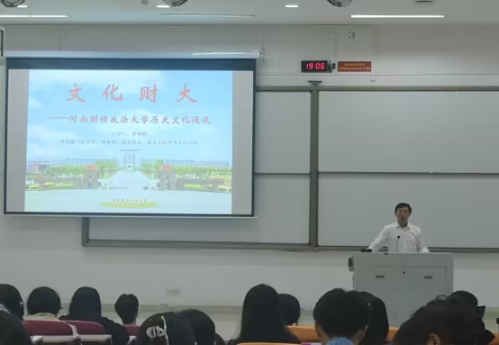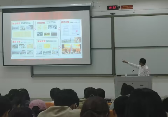 讲座依次从校史文化、环境文化、标识文化、精神文化四个方面展开。首先,徐朝钦以时间为轴,详细讲述了我校75年辉煌历史,使学生进一步了解我校的前世今生,激发起学生的自豪感和荣誉感。其次,徐朝钦在环境方面依次介绍我校的规划结构、建筑色调、道路命名、园区命名等方面内容,他指出我校建筑色调“灰红”谐音“恢宏”,象征诚恳、包容、沉稳、厚重,具有丰富的文化内涵。接着,徐朝钦从标识文化讲解了校徽的产生和寓意,他强调校徽具有我校学科特色,蕴含“智圆行方”之意,彰显着我校深厚的文化底蕴。最后,徐朝钦从精神文化方面讲解了学校办学理念、办学精神、校训和校风,重点阐释了三大文化协同育人理念,展现了我校独特精神文化。