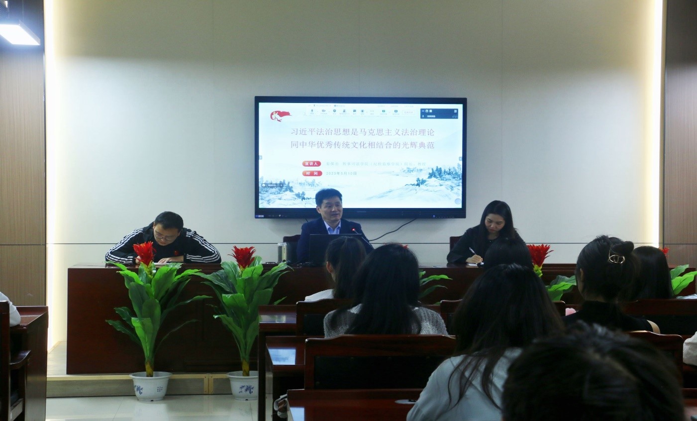为深入学习贯彻习近平新时代中国特色社会主义思想,不断提升我院党员的政治素养和文化素养,弘扬中华优秀传统法律文化,5月10日中午,我院于教学科研楼504会议室召开了习近平新时代中国特色社会主义思想主题教育专题党课。本次党课采取线上线下相结合的方式,由我院院长姜保忠教授主讲,团委书记武仕祯主持,研究生办公室主任陈凌剑及我院全体学生党员参加。
