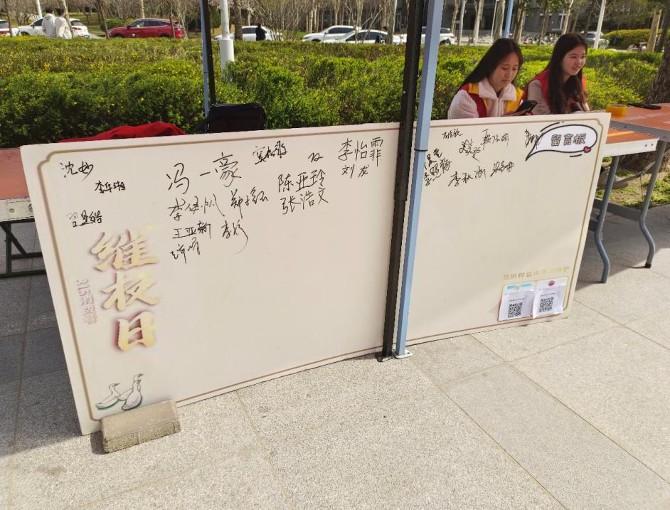 在“3.15国际消费者权益日”来临之际,为进一步提升我校学生的维权意识和法律素养,切实有效保障其合法权益,推动和谐校园文化建设,我院权益服务部于3月15日在第一餐厅正门处举办消费者权益保护周活动。