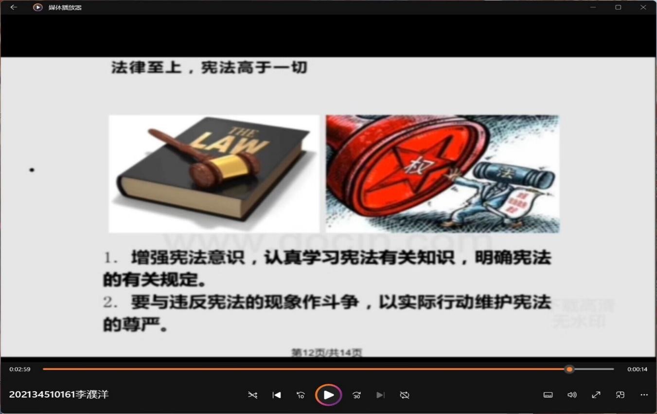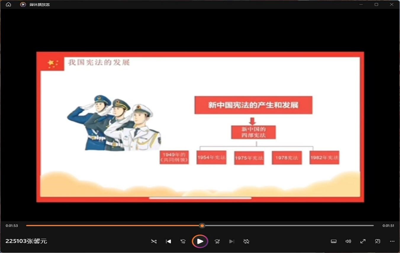 活动伊始,各班团支书及时准确地将活动通知传达到班级群里。学生们踊跃报名参加,以个人或小组合作的形式将自己对宪法的认知和感悟通过视频的形式展示出来,并由各班团支书汇总后发送至团委办公室邮箱。在最后的评选阶段,我院团委办公室严格依照活动要求,本着认真、公平、负责的态度,对上交视频逐一进行观看,并评选出优秀作品。