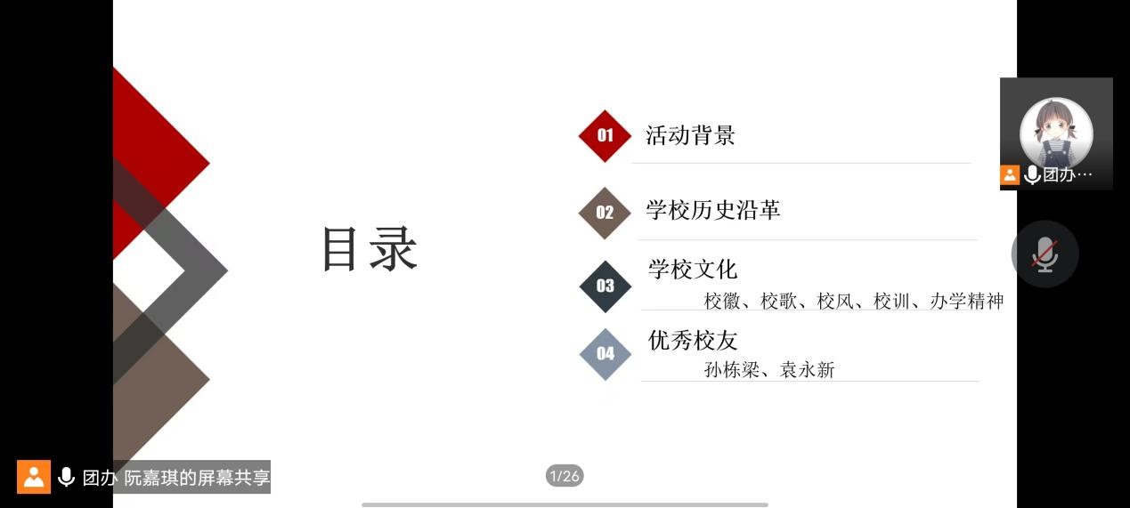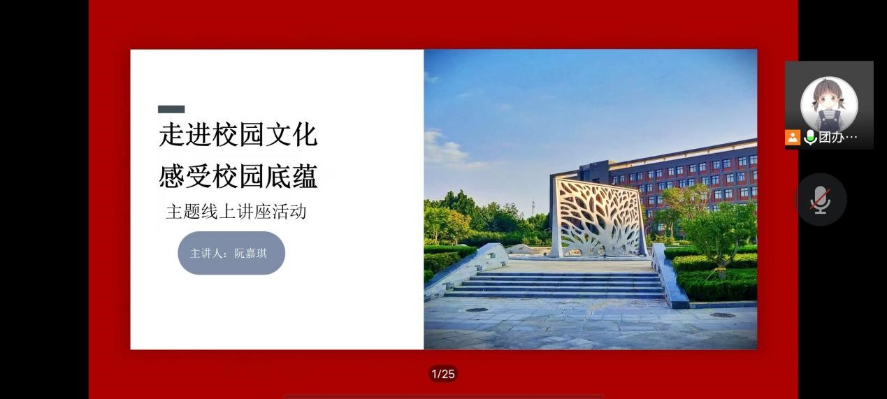 为加强新时代校园文化建设,营造校园良好文化氛围,11月14日晚,我院开展以“走进校园文化,感受校园底蕴”为主题的线上讲座。本次讲座由我院团委办公室组织举办,2022级全体新生参加。