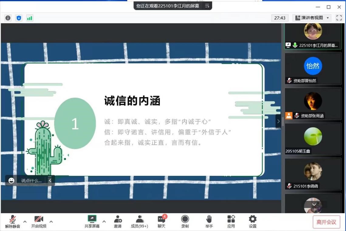 为增强学生的诚信意识,切实提升我院诚信教育成效,11月10日晚,我院资助部以线上方式开展诚信教育活动。