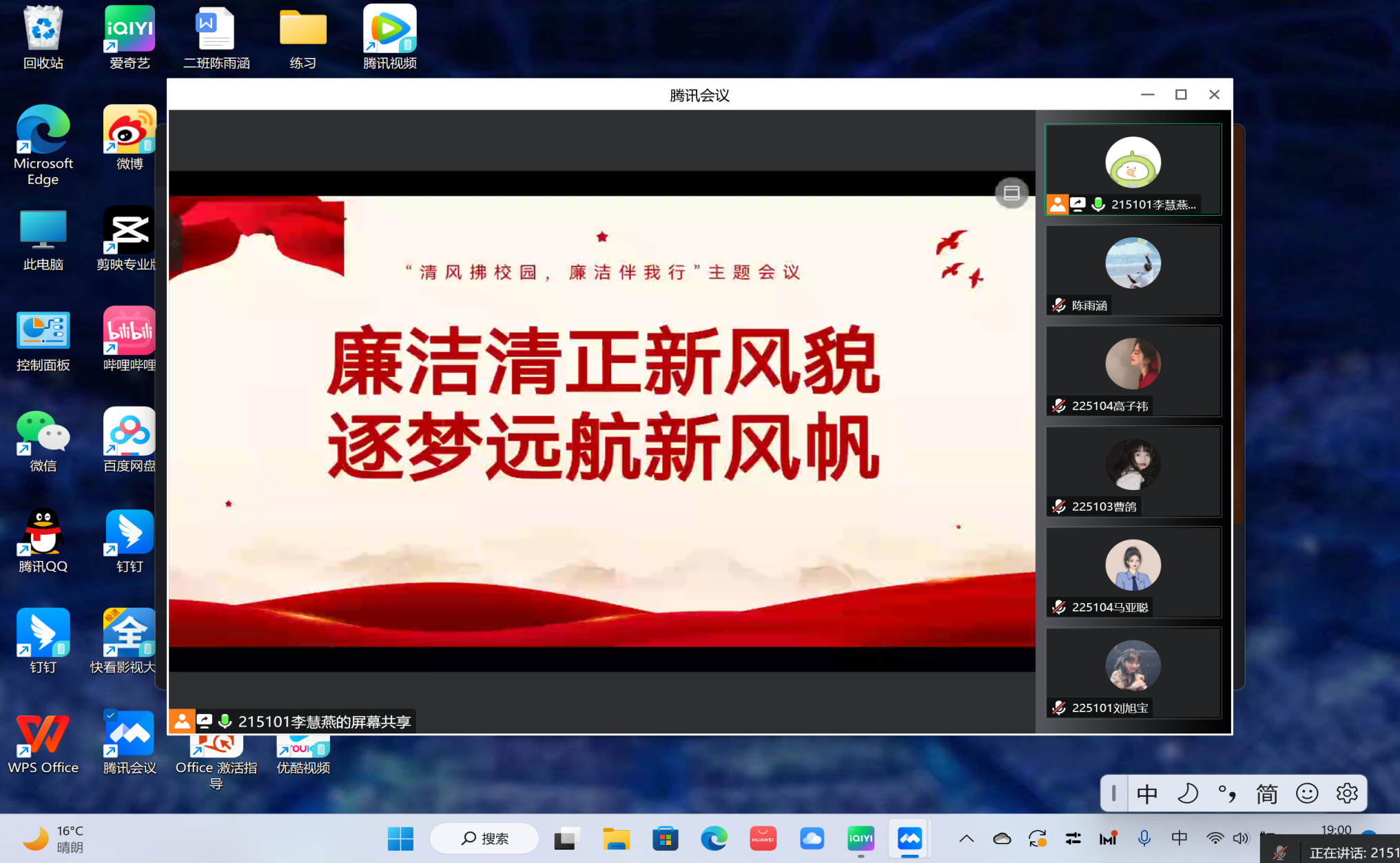 为贯彻落实党中央相关精神,倡导“以廉为荣,以贪为耻”的良好风尚,11月6日晚,我院通过腾讯会议平台开展“清风拂校园,廉洁伴我行”主题会议。本次会议由我院科技创新协会组织举办,2022级全体新生参加。