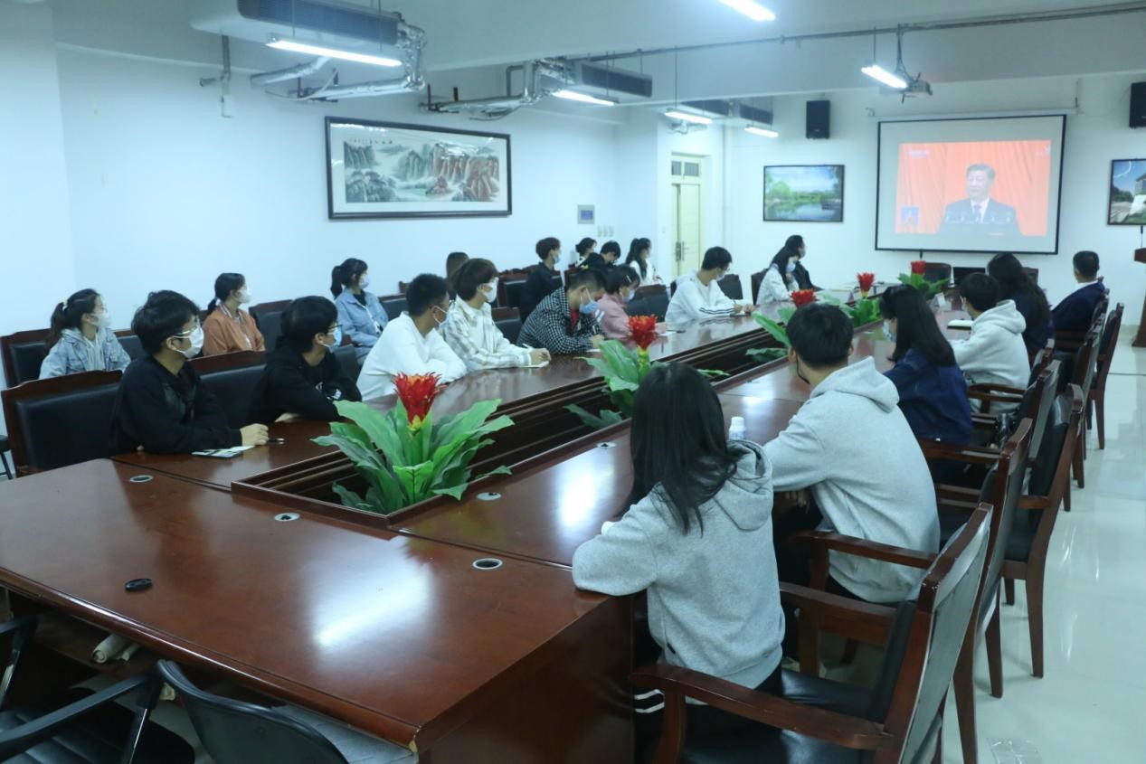 我院院长姜保忠、党委副书记陈俊敏、研究生辅导员陈凌剑及本科生辅导员段肖礞带领部分学生于我院504会议室进行线下收看,我院党委书记王健以及其他师生于线上完成收看。全体师生积极主动收看中国共产党第二十次全国代表大会开幕会,聚焦党的十九大以来的发展变化,让每一位师生感到责任无比重大,使命无尚光荣。我们应高举中国特色社会主义伟大旗帜,弘扬伟大建党精神,致力于人类和平发展崇高伟业。