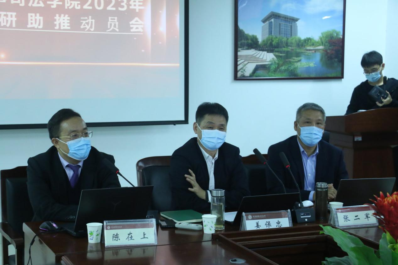 姜保忠院长做了总结。姜院长指出,全面推进依法治国的历史进程,“建设德才兼备的高素质法治工作队伍”,法学专业自身的特点,同学们的人生规划,家长学校老师对同学们成才的期待等因素,决定了考研是法学专业学生所面临和做出慎重决定的现实问题。在老师眼里,同学们即是学生又是孩子。作为老师,在同学们面临人生重大选择的时候,有责任、有义务给同学们提供适合各自发展目标的有益的指导,学院也会为同学们考研提供全方位的支持帮助。姜院长并就学硕与专硕的关系、法考与考研的关系等,给大家提出了切合实际的建议,同学们受益匪浅。最后,姜院长送给同学们两句话:“狭路相逢勇者胜”、“长风破浪会有时,直挂云帆济沧海”,以此勉励同学们奋发图强,放手追逐自己的人生梦想。