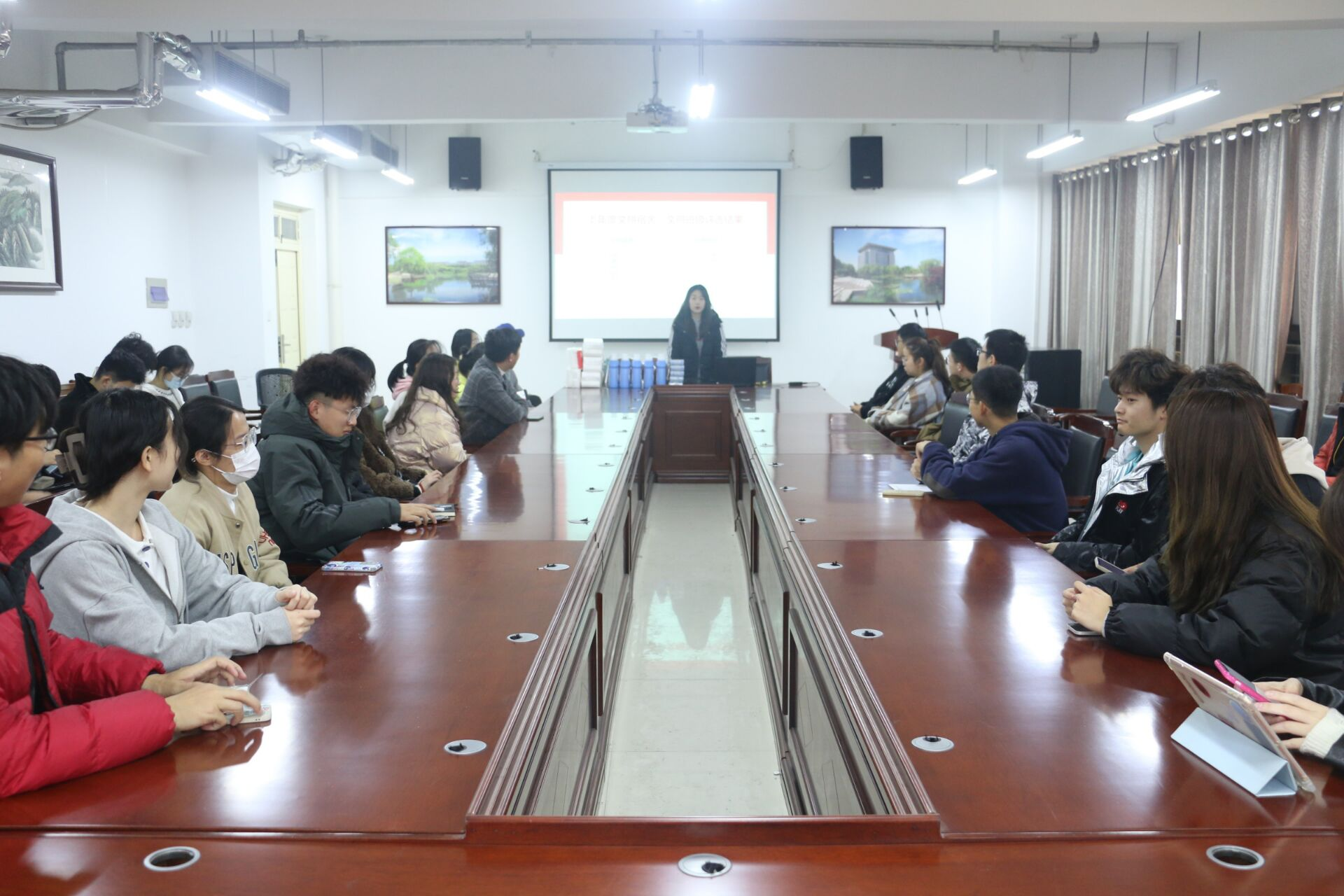 会议开始,首先由李子墨公布上学年文明宿舍荣誉、文明班级荣誉名单,并为他们颁发奖品。随后,介晓宇在总结上学年文明评选工作的基础上对新学年评选活动意义加以阐述。她指出,积极参与文明评选活动,不仅能够督促学生养成良好习惯,也能够发展我院特色文化。会议后半程,李子墨就新学年文明宿舍、班级评选提出具体实施方案,并向在场学生学生展示了文明宿舍的内部环境图片作为参考和学习。她认为文明宿舍评选不仅要考察宿舍卫生,更要摆正宿舍成员思想。文明宿舍评选要注重风气质量,从整洁度、安全性、学风好坏、思想状态等多方面进行全面考察。推动大学生活良性发展,营造积极向上的生活氛围,才是创建文明宿舍的根本要义。最后,李子墨提出宿舍公约,并提倡宿舍成员遵守公约,将文明准则内化于心,外化于行。