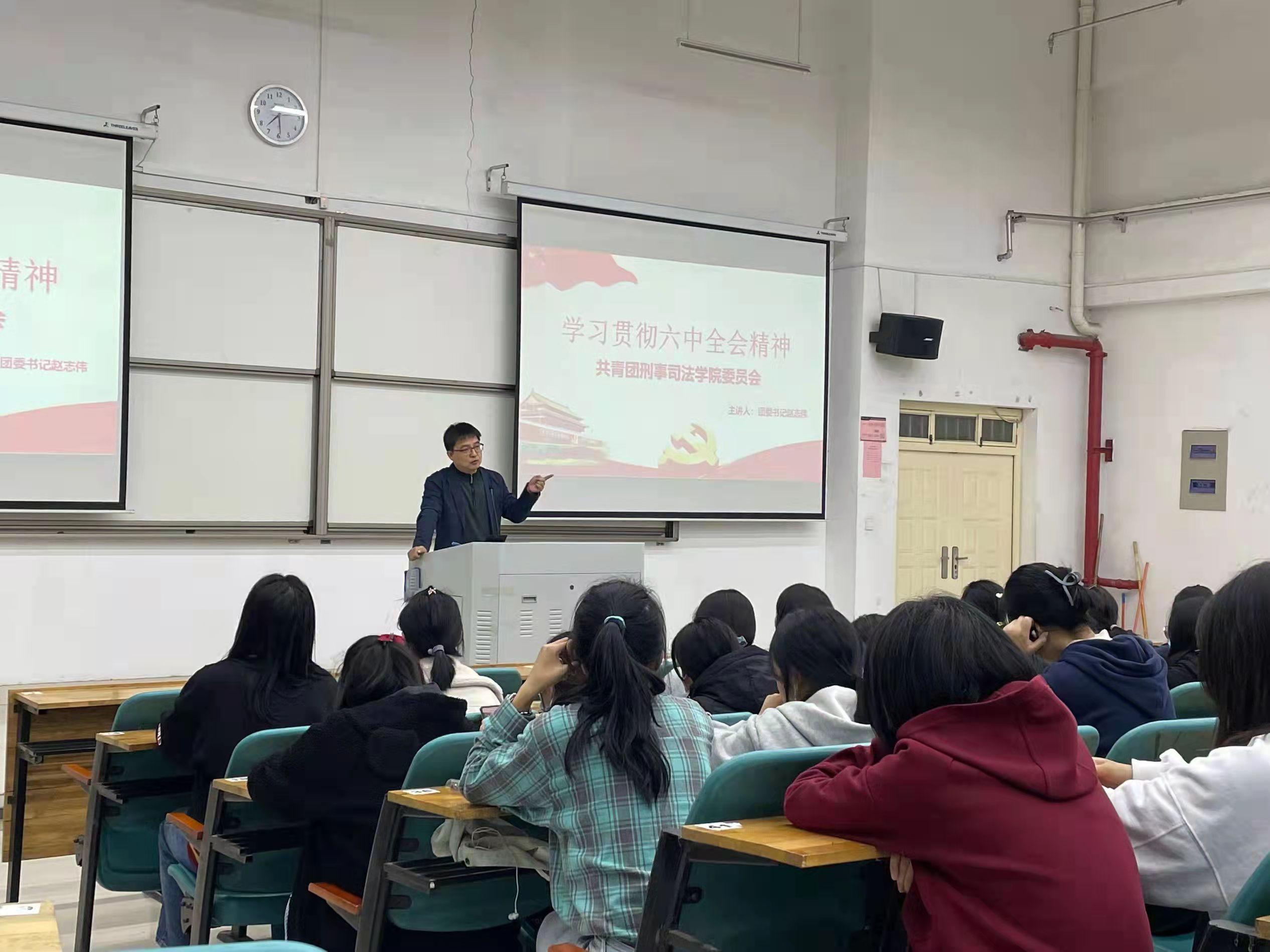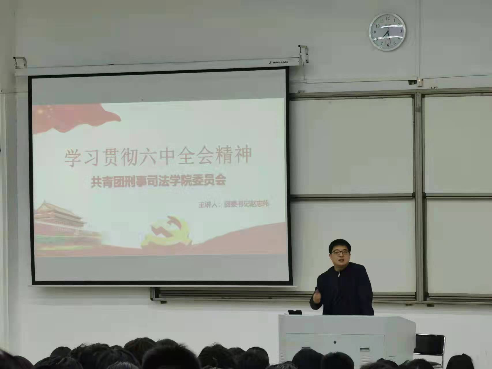 11月26日晚,我院团委书记赵志伟老师在教学科研楼208教室主持召开系统学习贯彻党的十九届六中全会精神会议,传达学习党的十九届六中全会精神,我院21级全体新生参与了本次会议。