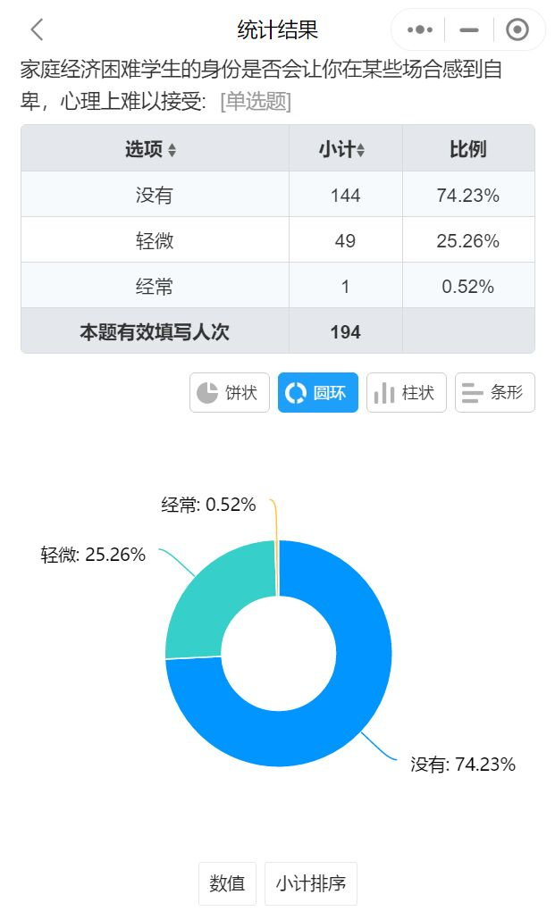 此次活动以问卷形式开展,学生资助部负责人祁晓蕊围绕家庭经济困难学生身份对心理健康的影响、封校状态下学生的心理健康状况、出现心理问题如何解决等多个方面设立了许多问题。学生们积极参与,认真填写问卷,将自己的感受和想法充分表达出来,推动我院对家庭经济困难学生的心理状况进行深入了解,将负面情绪进行有效调解。除此之外,资助部负责人还收集了部分家庭经济困难学生的心理问题反馈,通过认真仔细的汇总分析,得出了比较具有代表性的结论。