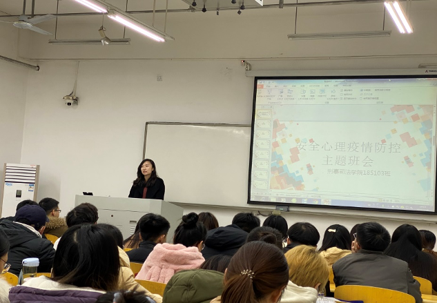 为减少人员聚集,本次主题班会以班级为单位分散召开。王梦秋老师主要针对安全教育、心理健康教育和疫情防控三个主题进行讲解。首先,王梦秋老师介绍了目前的疫情防控措施以及院系的相关要求,进一步加深我院学生对疫情防控有关情况的认识。随后,王老师再次强调了寝室用电安全问题,严禁使用违规电器。针对大学生的心理健康问题,她指出,班委与寝室长对学生们的心理健康状况要有良好把握,对有关问题应尽早发现,尽早疏解,及时反馈。最后,王老师在进一步强调学校的疫情防控政策的同时也对学生们提出了新的期望,希望大家在本学期最后一段时间认真学习,备战期末。各班班委也对班级近期的相关情况进行了总结。