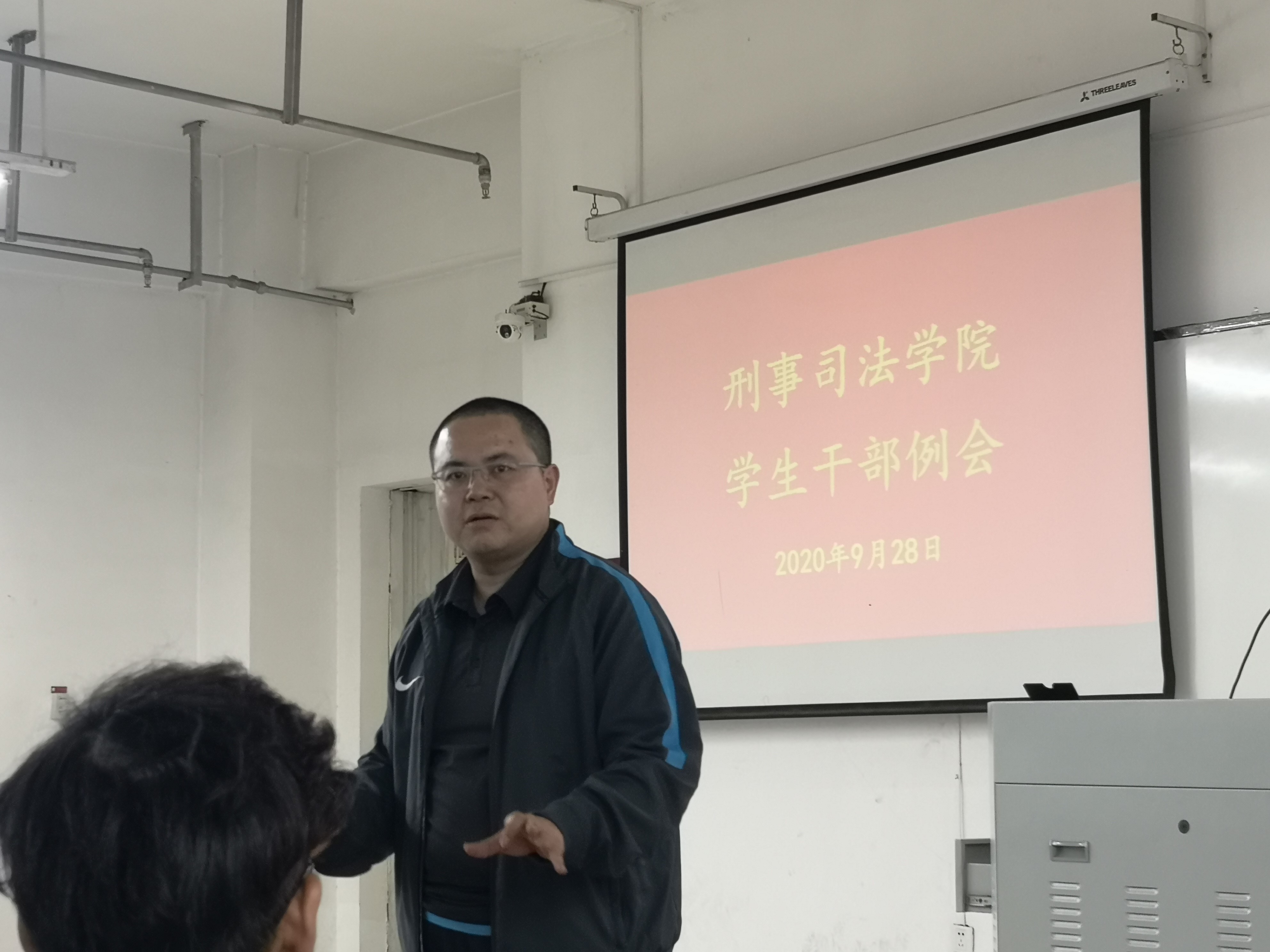9月28日中午,我院于教学科研楼108教室召开学生干部例会。我院党委副书记侯东亮,辅导员张荣埔、焦经川,各年级班长、团支书,团委、学生会部长及以上学生干部参与本次会议。