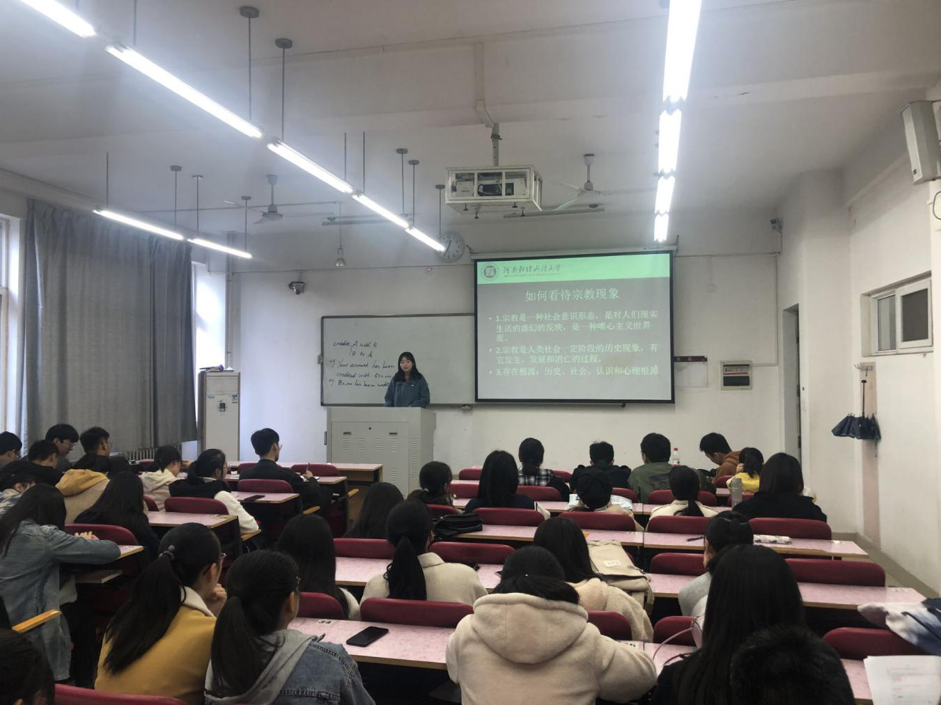 为加强宗教知识教育,培养大学新生宗教认识能力,11月19日、21日,我院分别于郑东校区第一教学楼203教室、文北校区十号楼阶梯一教室举行2019级新生宗教教育大会。我院学生干部靳倪妍担任会议主讲人,2019级全体学生参加此次会议。