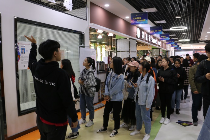 10月17日中午,我院组织2019级新生在第三餐厅三楼参观我校众创空间,我院195101班全体学生参与此次活动。