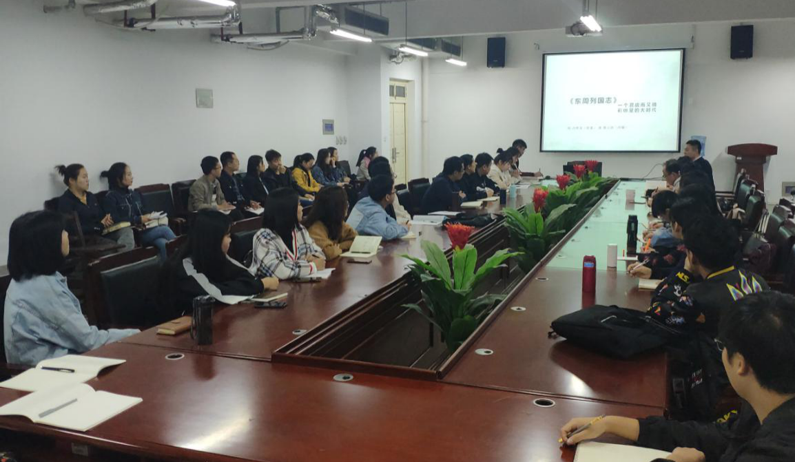 主讲人李伟亚介绍了《东周列国志》的成书背景、创作过程,该书讲述了从周宣王至秦统一六国五百余年间的重大历史事件与重要人物,有诸侯、臣子、士人,包括很多女性人物,这些历史人物或昏庸、或狡诈、或忠勇、或刚烈,通过一个个引人入胜的故事的展开,生动的人物形象跃然纸上。《东周列国志》在尊重历史、考据严谨的基础上,加入了一些演绎的成分,以褒善贬恶为主旋律,痛斥了奸佞的伪善,歌颂了忠勇贤能之士,体现了封建时代士大夫阶层忧国忧民的家国情怀,充满了正能量。随后,郭玉宾、于梦、袁豫桂与祝鹏沛四位同学分别选取了书中的个别事件或者个别人物与大家分享研读心得,并对该历史事件和人物背后的社会文化内涵进行了分析。